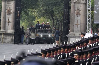 En el evento, al que llegó en un vehículo militar escoltado por una columna de honor con caballos y acompañado de los secretarios de la Defensa Nacional, Luis Cresencio Sandoval; de Marina, José Rafael Ojeda, y del presidente de la Mesa Directiva de la Cámara de Diputados, Porfirio Muñoz Ledo.