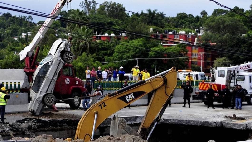 A las 5 de la mañana del miércoles 12 de julio de 2017 un enorme hueco se abrió en el pavimento del Paso Express, un libramiento de la autopista Cuernavaca-Acapulco, que apenas tres meses antes había sido inaugurado por el presidente Peña Nieto bajo la promesa de que duraría 40 años. El sorpresivo socavón se tragó un automóvil en el que viajaba el señor Juan Mena López y su hijo. Ambos fallecieron por asfixia tras dos horas de agonía.