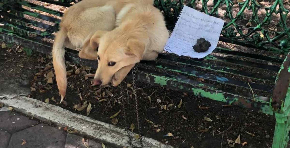 "El dejar aquí a mi perrito me duele mucho, pero tomé la decisión de dejarlo porque mis familiares lo maltrataban y siempre me dolía verlo en esas condiciones. Así que si lees esto y te tientas el corazón por favor adoptado y cuida muy de él y sino por favor deja la nota a su lugar para que otros lo lean y adopten”, escribió la persona que dejó a la mascota en la banca.