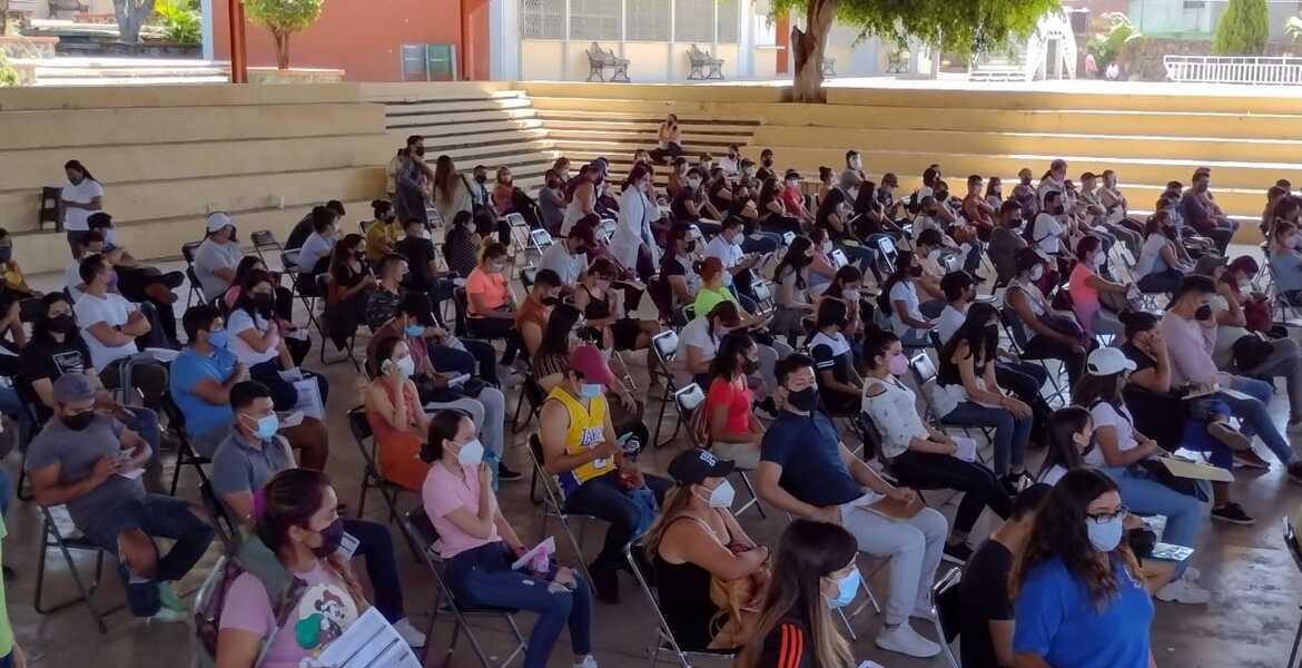 Jóvenes de 18 a 29 años de edad abarrotaron los módulos de vacunación contra el COVID-19, en Jiutepec.
