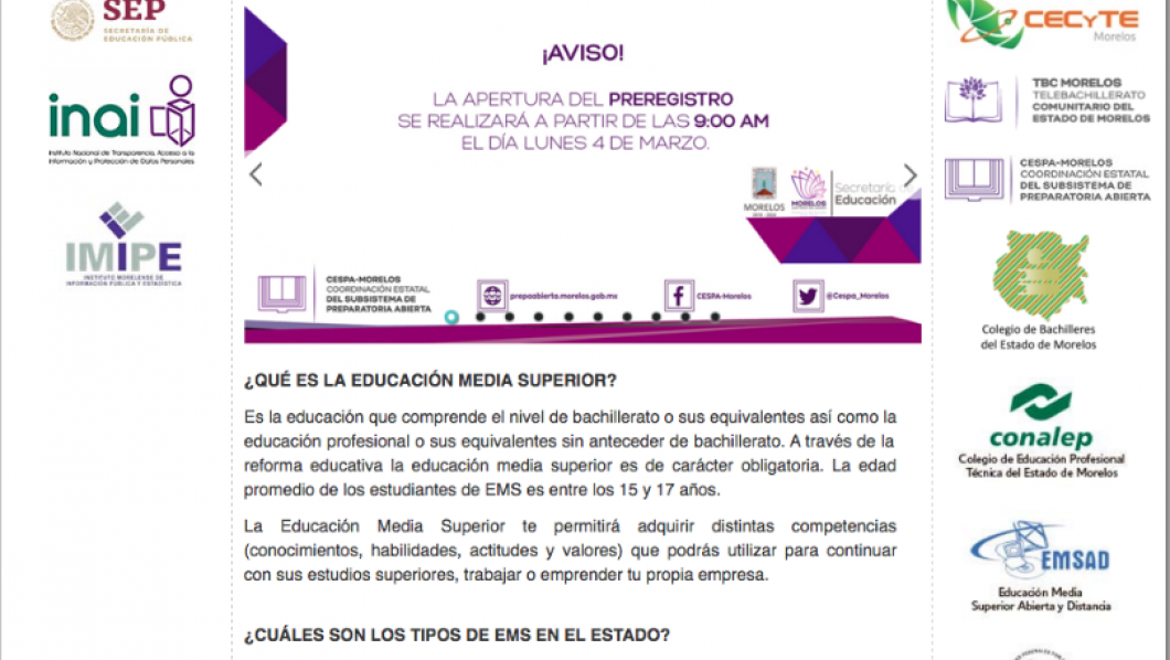 En Morelos la oferta educativa es distinta, pues existen 10 subsistemas en los que cada uno de los aspirantes podrá realizar su registro a partir de las 09:00 horas.
