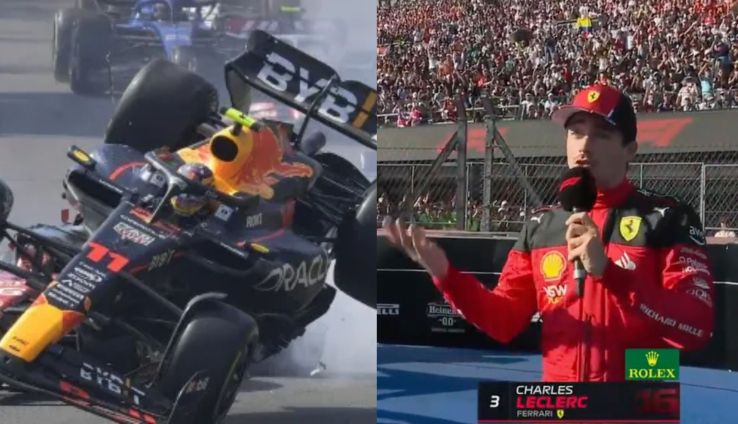 Fue apenas en la primera curva del Autódromo Hermanos Rodríguez en el inicio del GP donde el piloto mexicano y Charles tuvieron un encuentro que provocó un accidente ocasionando que Pérez abandonara la carrera.