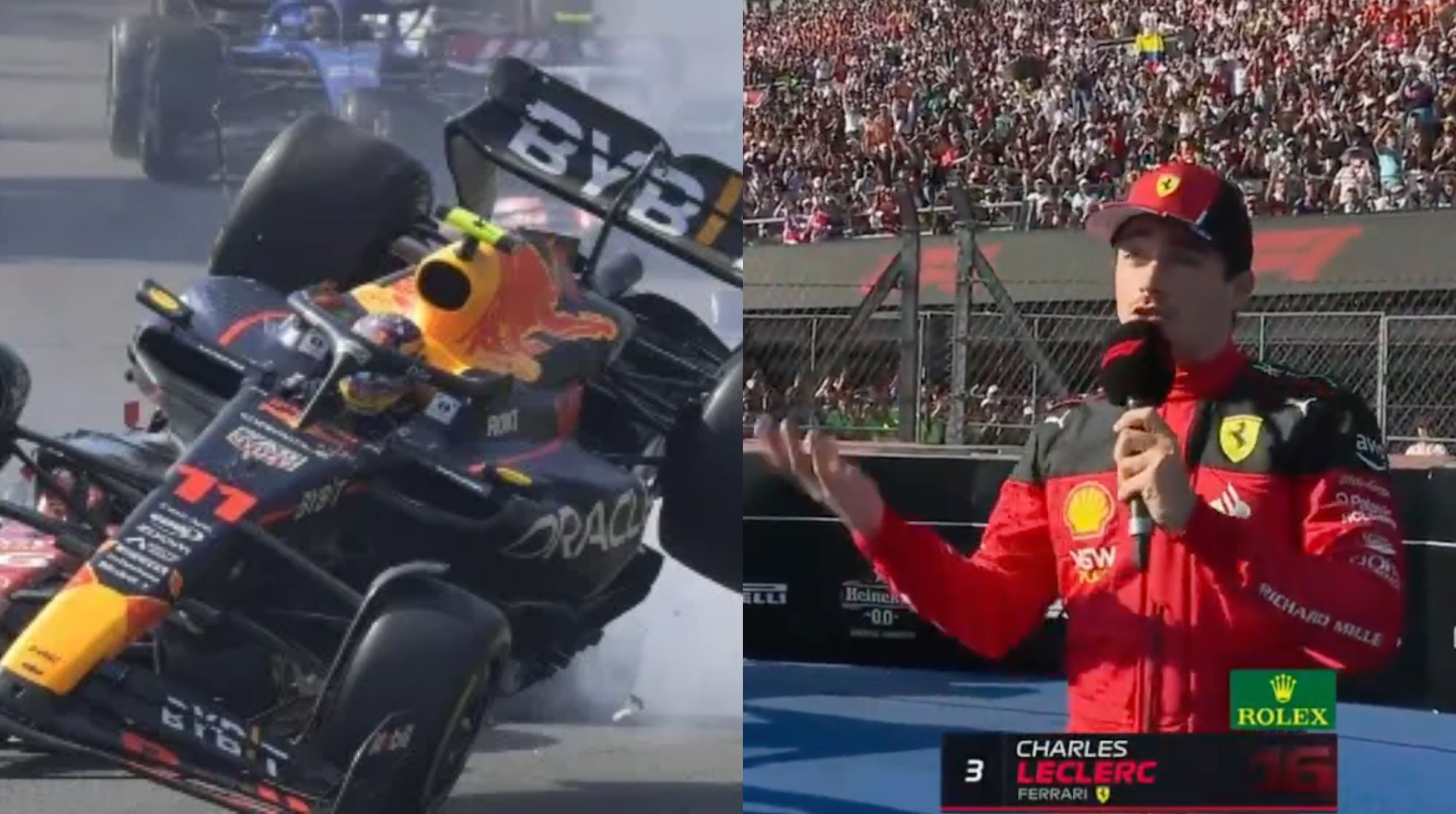 Al escuchar los mensajes de odio el piloto de Ferrari expresó: “Muchos abucheos, desafortunadamente me toqué con Checo en la primera curva, pero no fue a propósito, no tenía a dónde moverme porque del otro lado tenía a Max”.