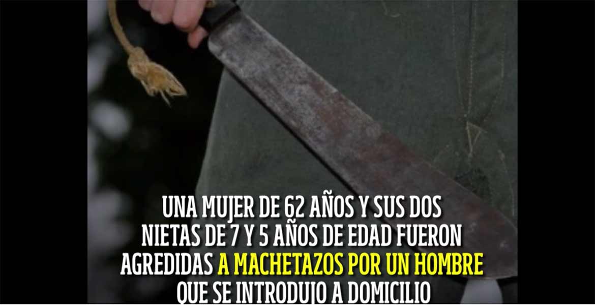 Una mujer de 62 años y sus dos nietas de 7 y 5 años de edad fueron agredidas a machetazos por un hombre que se introdujo a domicilio.