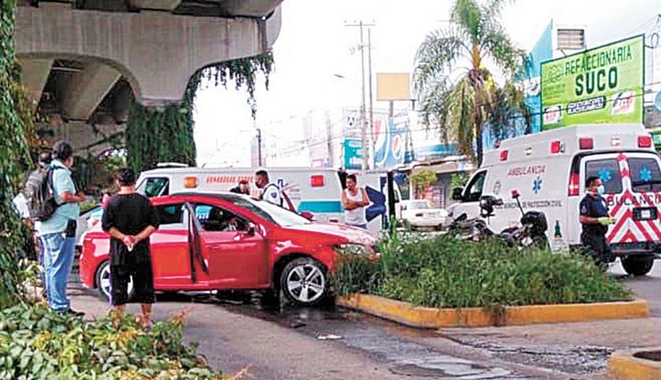 En el camellón de bulevar Cuauhnáhuac acabó un auto, luego de que el conductor perdiera el control presuntamente al evitar arrollar a una mujer, a la altura del crucero de Tejalpa, en Jiutepec.