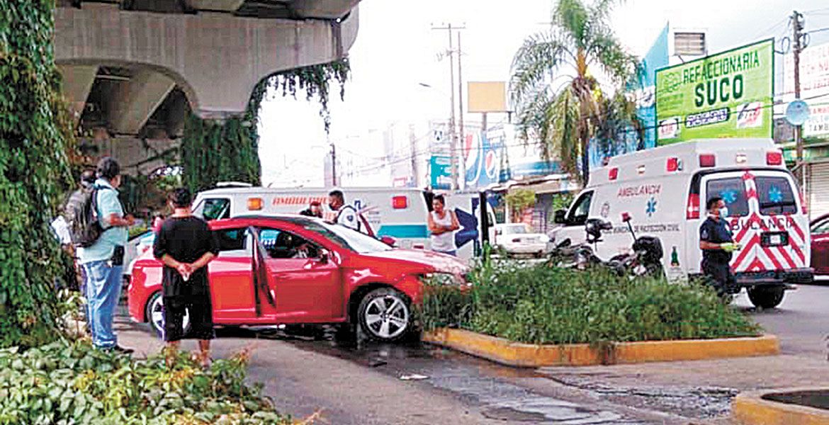 En el camellón de bulevar Cuauhnáhuac acabó un auto, luego de que el conductor perdiera el control presuntamente al evitar arrollar a una mujer, a la altura del crucero de Tejalpa, en Jiutepec.
