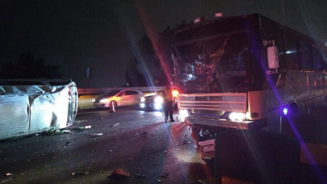 Policías federales asignados al área de carreteras abanderaron por varios minutos un accidente en el kilómetro 18 más 500 de la Autopista México-Pachuca, a la altura de la colonia Santa María Tulpetlac, en el municipio mexiquense de Ecatepec, donde un autobús de pasajeros impactó en la parte trasera a una camioneta Urvan del transporte público provocando que ésta volcara sobre su costado derecho.