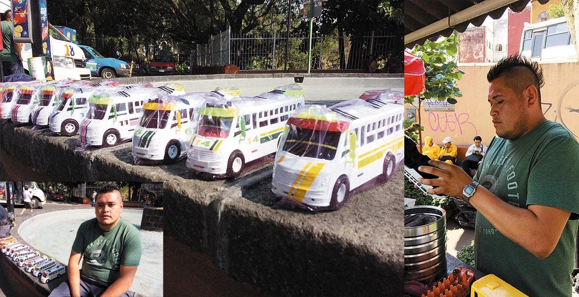 Adán Jurado no solo es atento checador del tránsito de "rutas" en Morelos, sino que también las reproduce a detallada escala con base en su ingenio y talento para la manualidad. El creador de la miniaturas se asienta en la fuente Porfirio Díaz, a bajo del Calvario