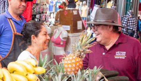 El candidato de la coalición Sigamos Haciendo Historia al Senado de la República, Víctor Mercado Salgado acudió a la invitación que le hicieron líderes de varios sectores para recorrer el mercado municipal de Puente de Ixtla.