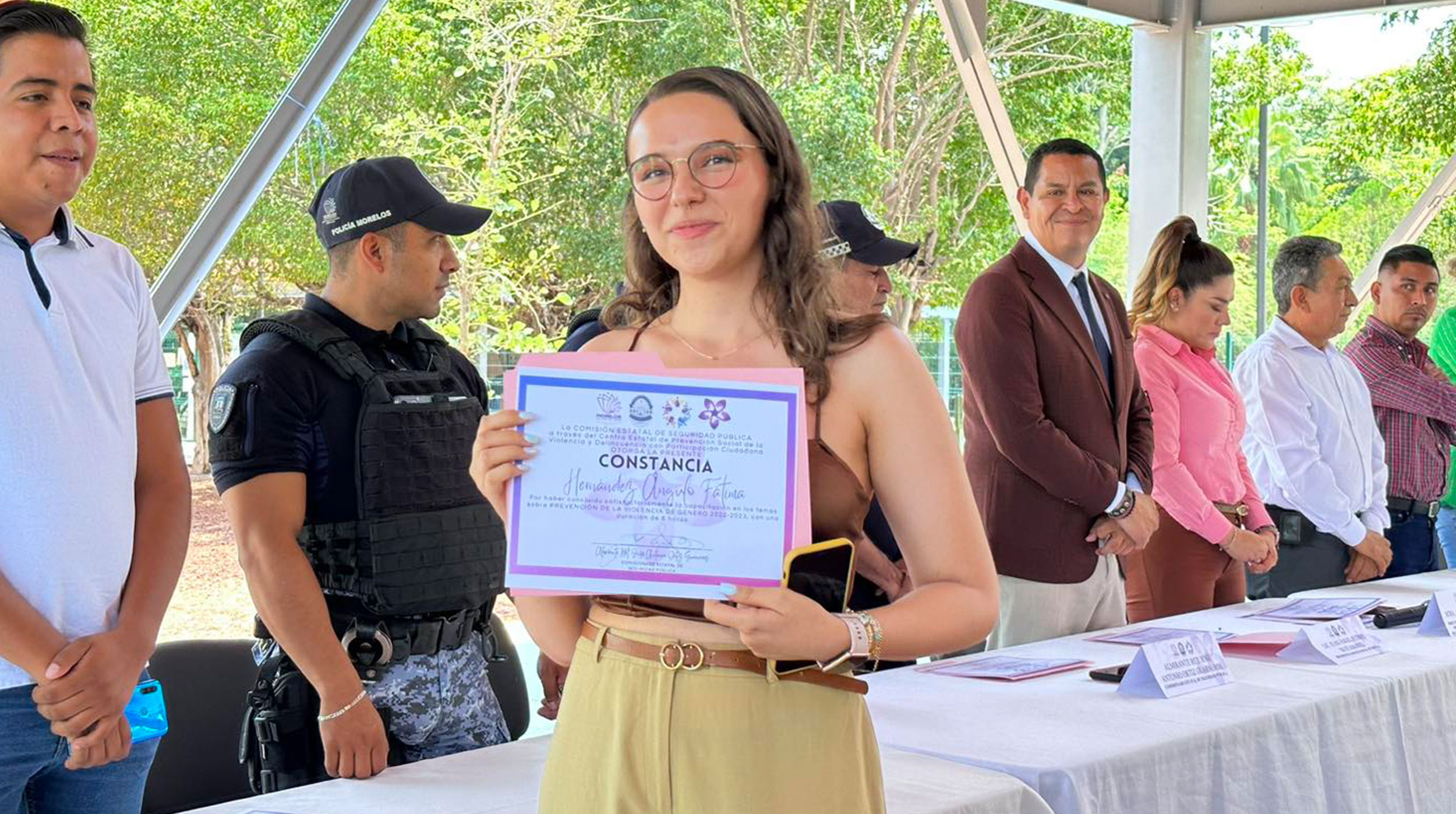 El edil Juan Ángel Flores Bustamante reconoció el gran desempeño de policías y personal de distintas áreas del Ayuntamiento, que recibieron por parte de Anabel Banda Ruiz, directora del Centro Estatal de Prevención Social de la Violencia, la constancia por su acreditación del curso de capacitación sobre la “Prevención de Violencia de Género”. También participó personal de Amacuzac, PuentedeIxtla, Xoxocotla, Tlaquiltenango, Tlaltizapán, y Zacatepec. En total, recibieron constancia 23 personas.
