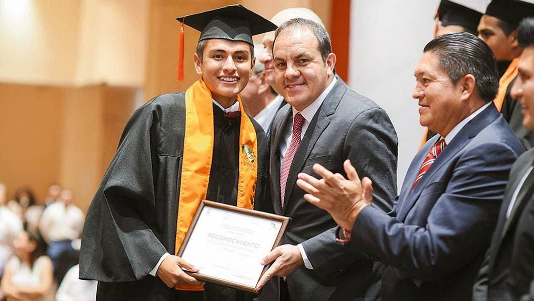 Cuernavaca, MORELOS.- Al presidir la ceremonia de graduación del Colegio de Estudios Científicos y Tecnológicos del Estado de Morelos (Cecyte) Emiliano Zapata, generación 2016-2019, el gobernador Cuauhtémoc Blanco Bravo señaló que el estado cuenta con jóvenes con una alta preparación académica, al convocar a los 340 egresados a reflexionar sobre el valor de la gratitud.