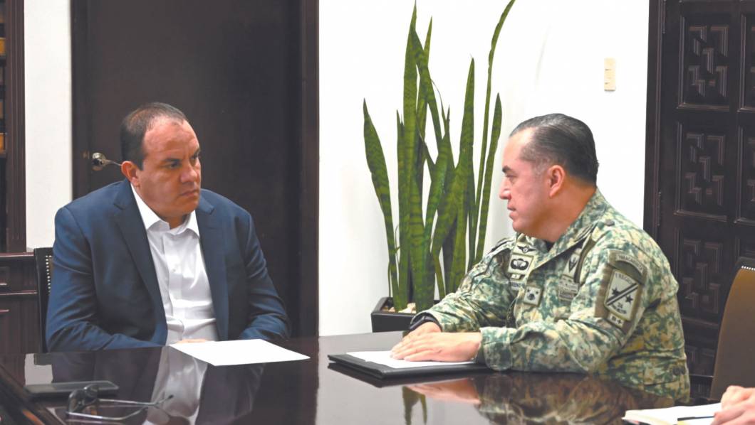 El Gobernador de Morelos, Cuauhtémoc Blanco, encabezó una reunión de trabajo con el General Diplomado de Estado Mayor, Julio César Moreno Mijangos, comandante de la 24/a Zona Militar, con el propósito de dar seguimiento a la estrategia de seguridad en la entidad.