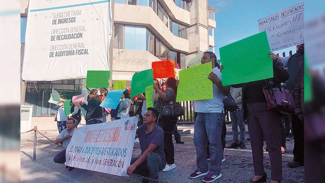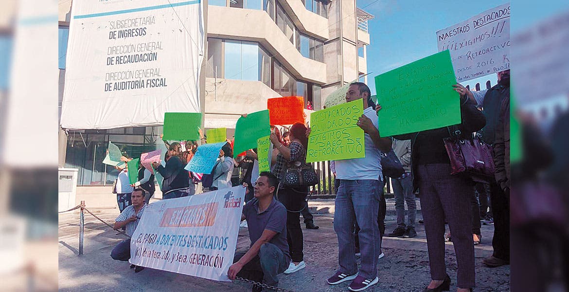 Ayer, desde las 9:00 horas profesores que presentaron su examen de evaluación desde el año 2016 y que resultaron destacados, se manifestaron en las instalaciones de la subsecretaría de ingresos de la Secretaría de Hacienda, ubicada en la calle Himno Nacional, del centro de Cuernavaca.
