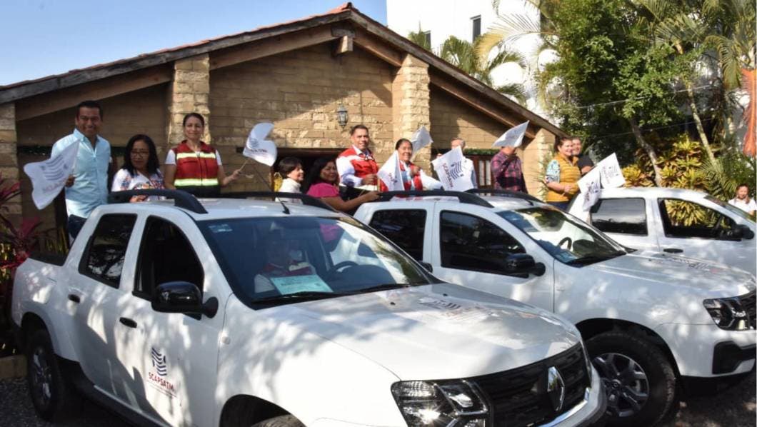 La presidenta municipal de Temixco, Juanita Ocampo Domínguez, encabezó la entrega de cuatro vehículos que serán para apoyo al Sistema de Conservación, Agua Potable y Saneamiento de Agua de Temixco (SCAPASATM), que encabeza Porfirio Guerrero Arcos.
