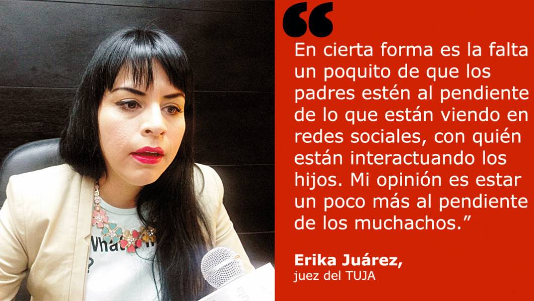 En cierta forma es la falta un poquito de que los padres estén al pendiente de lo que están viendo en redes sociales, con quién están interactuando los hijos. Mi opinión es estar un poco más al pendiente de los muchachos." Erika Juárez, juez del TUJA