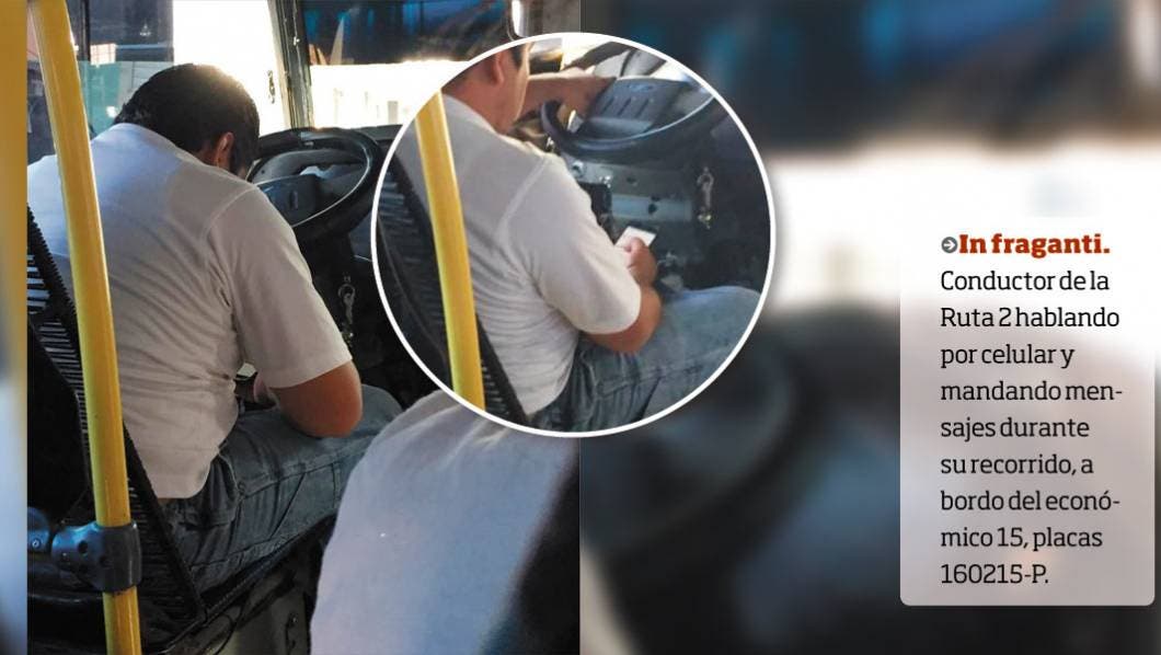 In fraganti. Conductor de la Ruta 2 hablando por celular y mandando mensajes durante su recorrido, a bordo del económico 15, placas 160215-P.