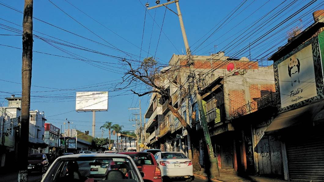 CUERNAVACA MORELOS.- Vecinos de la avenida Plan de Ayala de la colonia Amatitlán, están muy preocupados porque sobre esta vía de comunicación hay un poste de luz que soporta cables de alta tensión y está a punto de ceder por el peso.