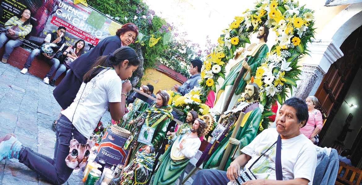 Salían y entraban los devotos templo, algunos llegaban por la calle de Clavijero, otras por Tepetates, dejaban alguna oración, una figura, una veladora, unos detalles que ellos mismos hicieron en agradecimiento a la protección de San Judas Tadeo.