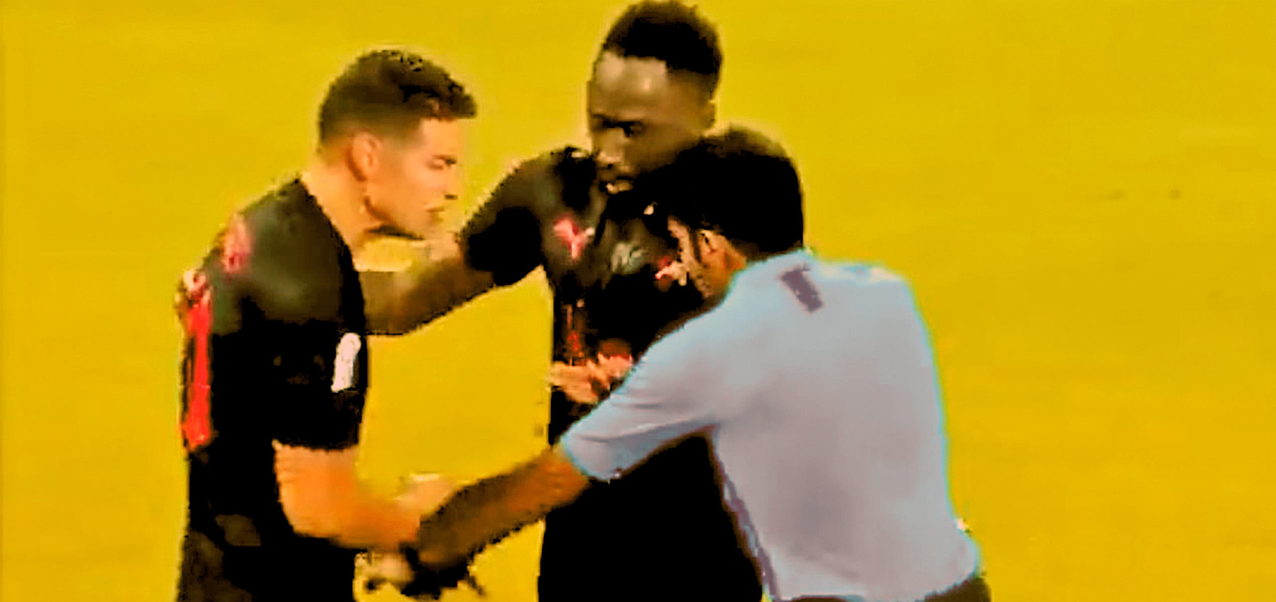 James sufrió una dura entrada en el agregado, pero el silbante solo amonestó al infractor, hecho que hizo enfurecer al colombiano, quien recibe amarilla y de inmediato enfurece, yendo a reclamarle, empuja a sus compañeros, encara al árbitro, se ríe de él y luego es expulsado.