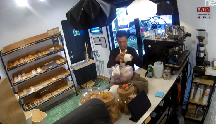 El peculiar robo, quedó registrado por una cámara de seguridad dentro de la panadería.