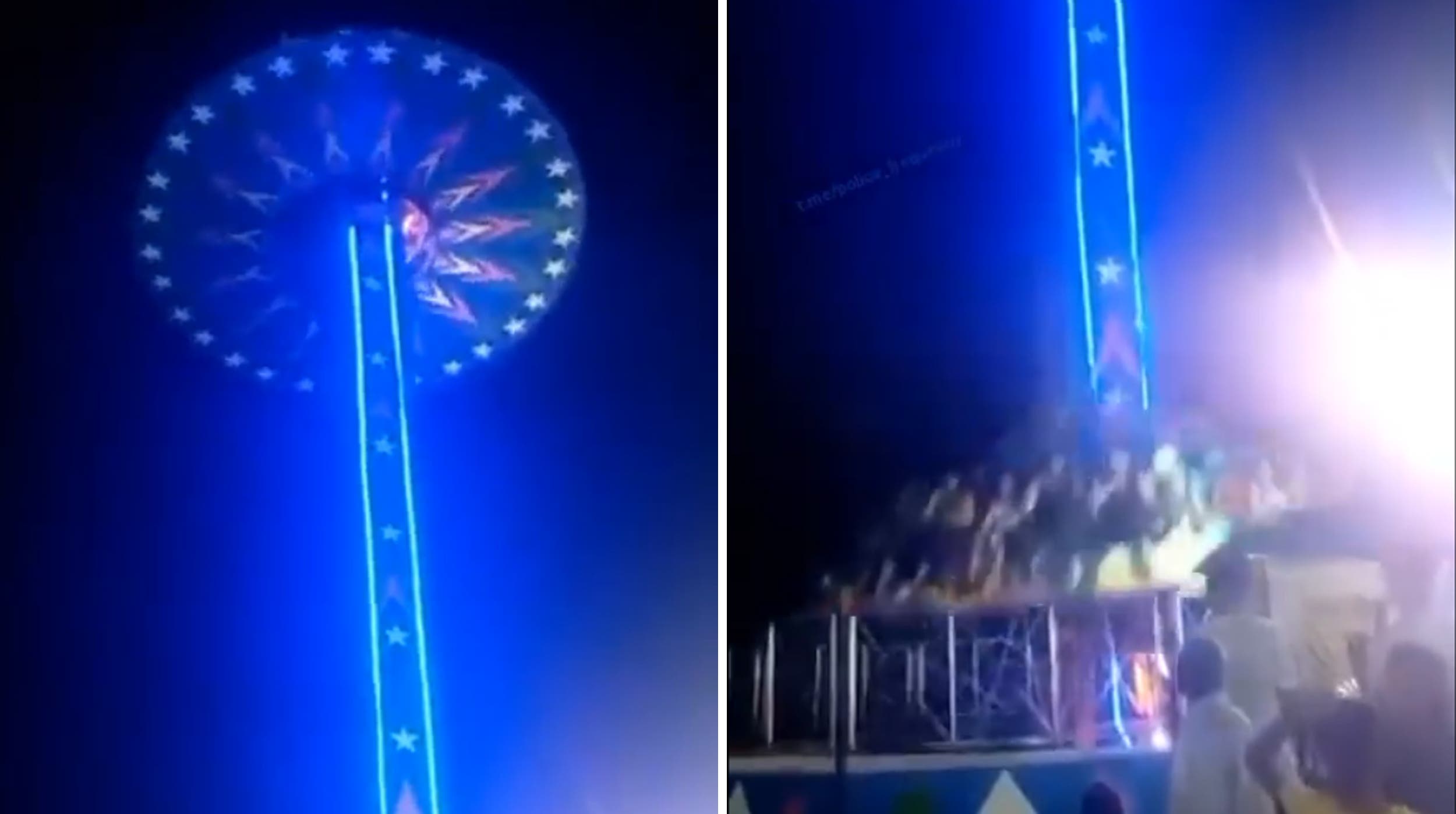 Cuando el juego llega a lo más alto para descender, ocurre una falla y este no se detiene justo antes de que toque el suelo por lo que se siguió de largo y se desplomó.