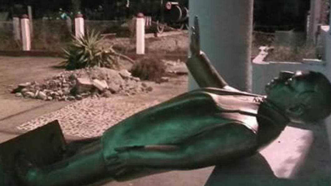 De acuerdo con medios locales, personal de servicios municipales movió la estatua de bronce y la dejó abandonada a un lado del parque municipal, a la espera de ser trasladada a un almacén.