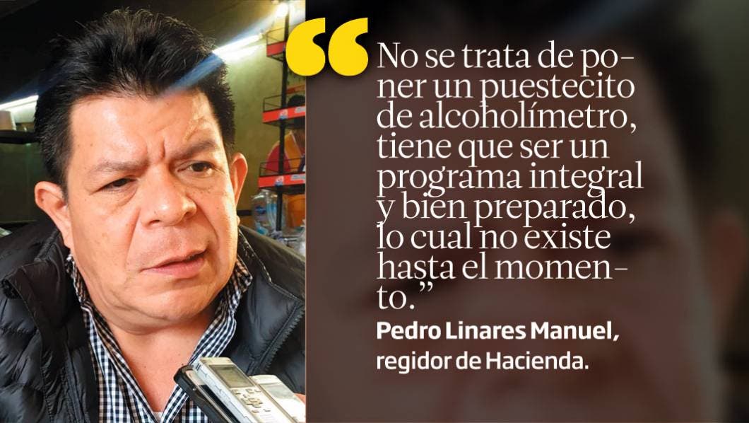 "No se trata de poner un puestecito de alcoholímetro, tiene que ser un programa integral y bien preparado, lo cual no existe hasta el momento." Pedro Linares Manuel, regidor de Hacienda.