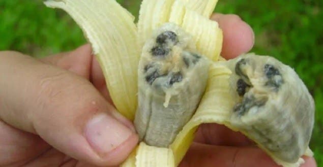 La imagen de la supuesta banana contaminado pertenece al sitio web FusariumWilt.org y describe que es un plátano silvestre de semillas grandes.