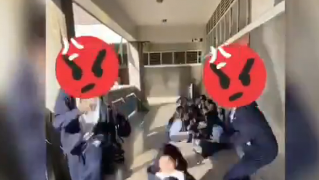 En redes sociales circula un video en el que se observa cómo un estudiante cae hacia atrás y golpea su nuca