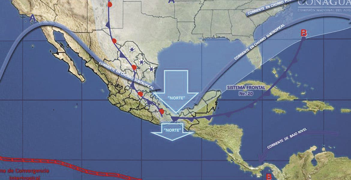 Explicó que en este periodo se pronostica que el sistema frontal continúe desplazándose lentamente sobre el norte, noreste y oriente del país.