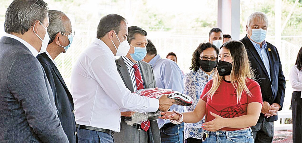 Evento. El Gobernador Cuauhtémoc Blanco en compañía del secretario de Educación, Luis Arturo Cornejo, el rector Arturo Mazari, entre otras autoridades, entregó 200 uniformes.