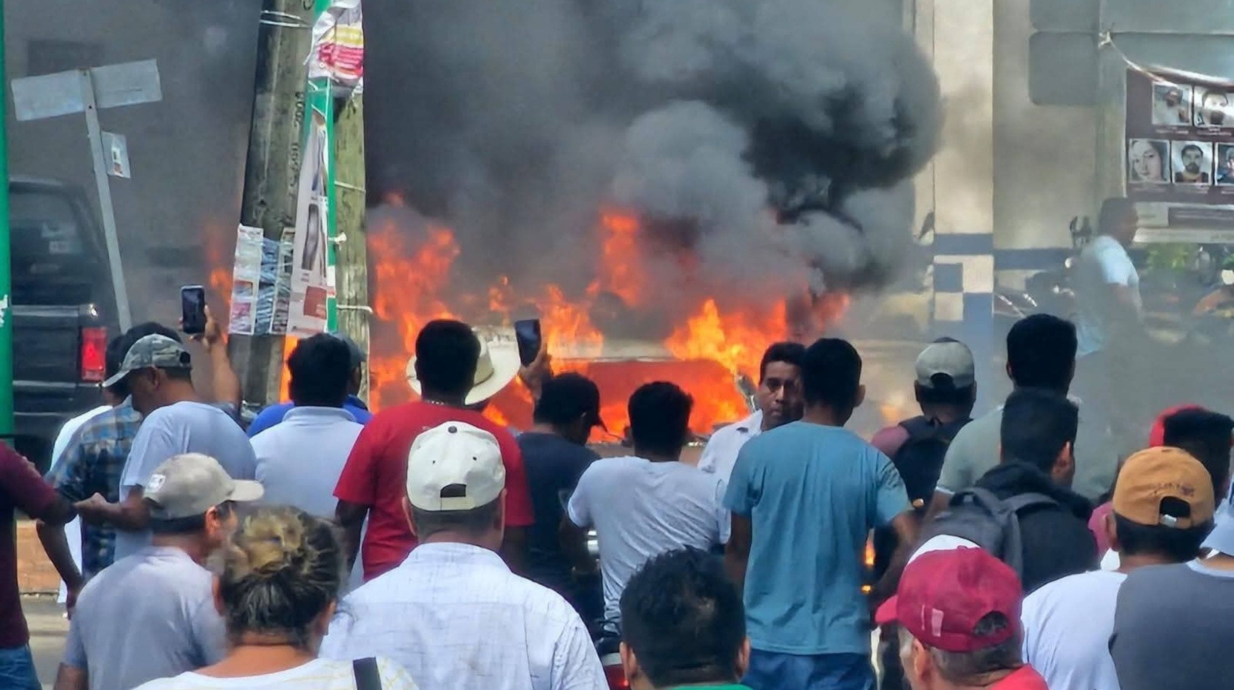 Según reportes de medios locales y publicaciones en redes sociales, un grupo de residentes, enfurecidos por años de extorsiones, irrumpió en las oficinas de Tránsito y Vialidad Municipal. Los manifestantes agredieron físicamente a dos oficiales, los despojaron de sus uniformes, los golpearon y los ataron a postes frente a la dependencia. Videos difundidos en X muestran a los agentes rodeados y siendo golpeados con machetes, mientras otros vecinos incendiaban al menos dos patrullas, dos motocicletas oficiales y vehículos privados, incluyendo el del director de la delegación, José Guadalupe Saturnino.