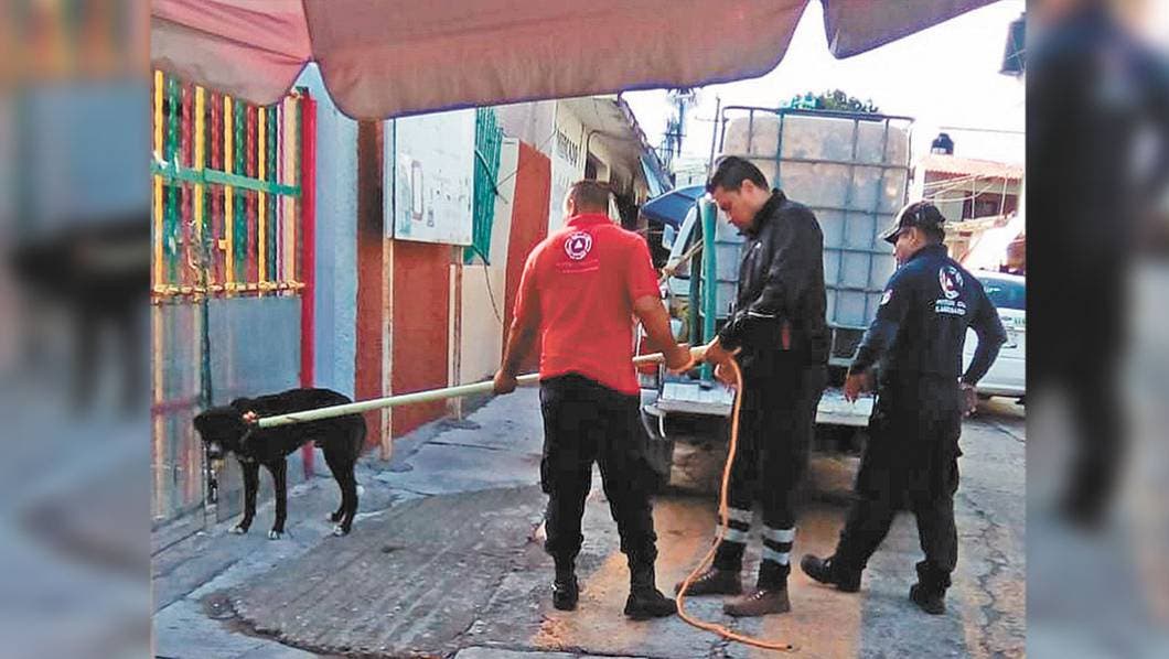 Un perro que dejaron amarrado, en la puerta de un kínder de la colonia Gabriel Tepepa, casi muerde a la maestra al querer ella entrar a trabajar a la institución; posteriormente, el perro fue retirado por personal de Protección Civil.