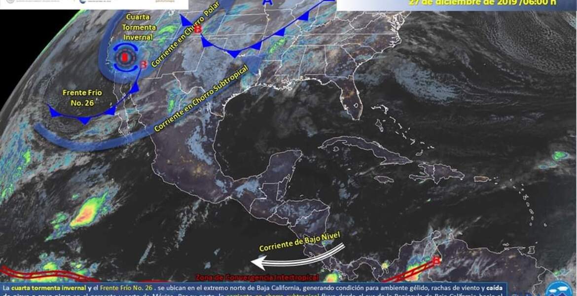 Lo anterior, estará asociado al fortalecimiento del frente frío número 26, así como a la masa de aire polar que lo impulsa y que cubrirá gradualmente territorio nacional