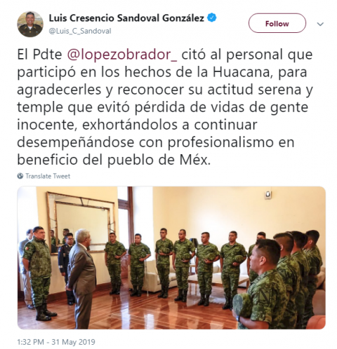 Después de los suscitados hechos, Andrés Manuel López Obrador afirmo que la actitud de los soldados fue muy responsable, muy digna y muy valiente porque lo que es una cobardía es aprovecharse de nuestros semejantes.