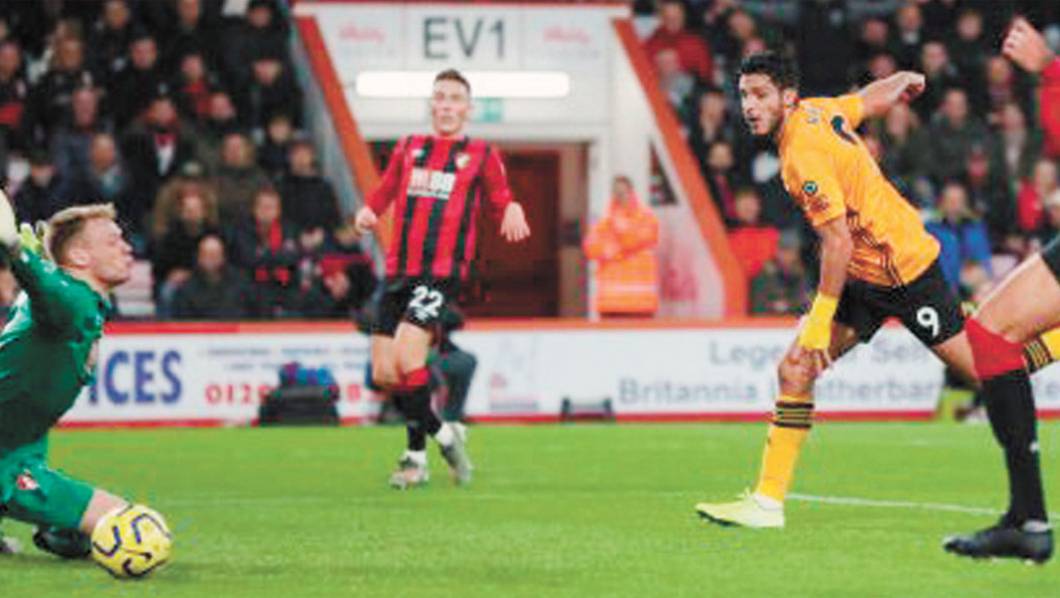 Bournemouth.- El atacante mexicano Raúl Jiménez anotó en la victoria del Wolverhampton por 2-1 sobre el AFC Bournemouth, en choque perteneciente a la jornada 13 de la Premier League de Inglaterra.