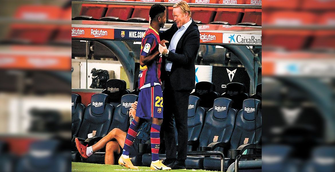 Cuatro minutos más tarde, Fati, de 17 años, volvió a aparecer para firmar su doblete y extender su ventaja para los de Koeman.
