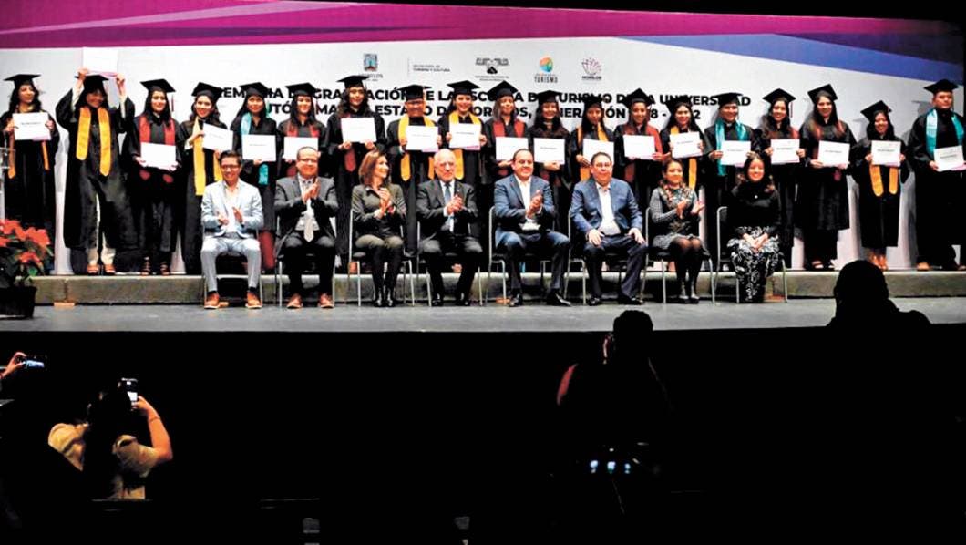 “Los felicito por el gran esfuerzo realizado durante estos cuatro años de estudio, preparación y disciplina académica, que no fueron fáciles porque pasamos por la pandemia y un sismo que afectó a la universidad, pero saben que lo más importante es el esfuerzo y las ganas cuando uno quiere salir adelante. Felicidades a los nuevos profesionistas promotores del turismo en Morelos, en sus manos está la difusión de las bondades y potencial turístico del estado Anfitrión del Mundo”, expresó.
