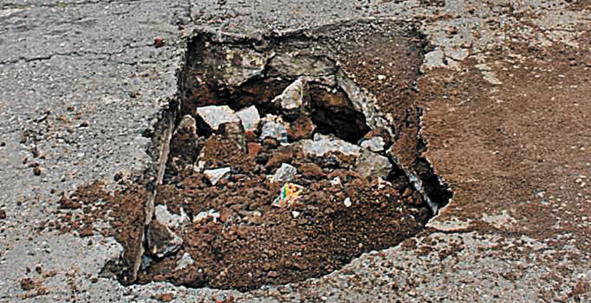 Socavón. El desperfecto en la calle presenta grandes dimensiones, además de tener una profundidad considerable.