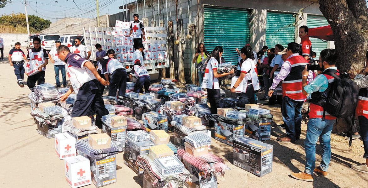 Seis toneladas en artículos para el hogar y despensa para más de 300 familias de la colonia Lomas del Ajonjolinar, en Cuernavaca, entregó la Cruz Roja previo censo de la coordinación de Resiliencia Comunitaria, Socorros, Veteranos y Juventud.