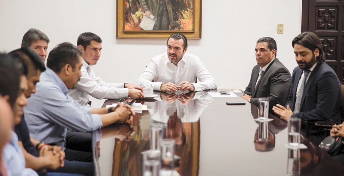 La reunión se llevó a cabo en Palacio de Gobierno, donde estuvieron presentes el subsecretario de Gobierno, José De Jesús Guízar Nájera, el Coordinador de Asesores, Mauricio Robles Cortés, el director general de Gobierno, Mauricio Termignoni Apodaca y el secretario Técnico, Leonardo Silva Anguiano.