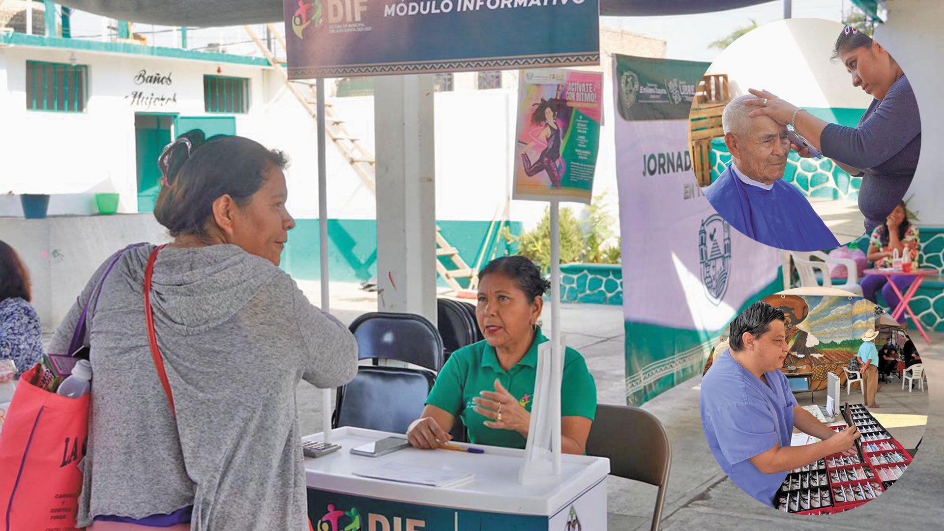 Durante la jornada se ofrecieron servicios como corte de cabello gratuito, aplicación de uñas a bajo costo y asesoría legal sin costo, beneficiando a vecinos de la comunidad.