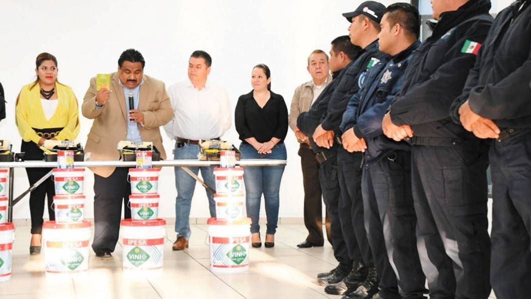 Cuautla, Morelos.- El alcalde de Cuautla, Raúl Tadeo Nava, acompañado de los miembros del cabildo, hicieron entrega a elementos policiacos el último kit de material para la rehabilitación de sus viviendas y un vale de despensa con un monto total de inversión de 434 mil 549 pesos, recursos del programa de Fortalecimiento para la Seguridad (Fortaseg) 2016.