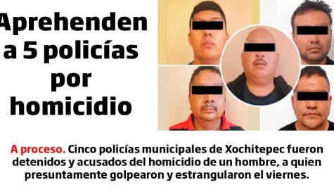 A proceso. Cinco policías municipales de Xochitepec fueron detenidos y acusados del homicidio de un hombre, a quien presuntamente golpearon y estrangularon el viernes.