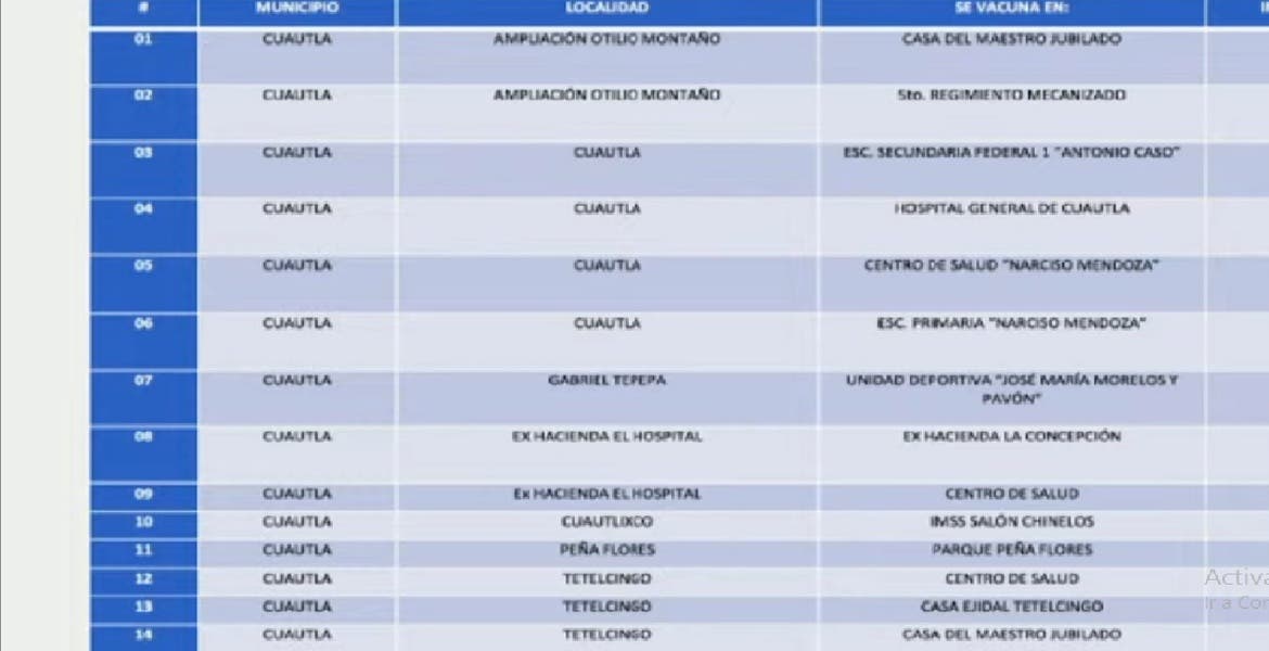 “De acuerdo al Plan Nacional de Vacunación, se eligió al municipio de Cuautla por el número de biológicos que arribaron a la entidad, la alta densidad poblacional y el número de casos positivos de COVID-19”, explicó.