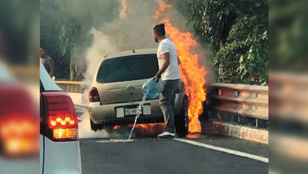 En ceniza quedó un Chevy, color arena, tras incendiarse presuntamente debido a un cortocircuito, cuando circulaba por la autopista México-Acapulco, a la altura de la desviación a Emiliano Zapata, en Temixco, por lo que bomberos acudieron al lugar y trabajaron arduamente varios minutos para sofocar las llamas que arrasaron con el vehículo.