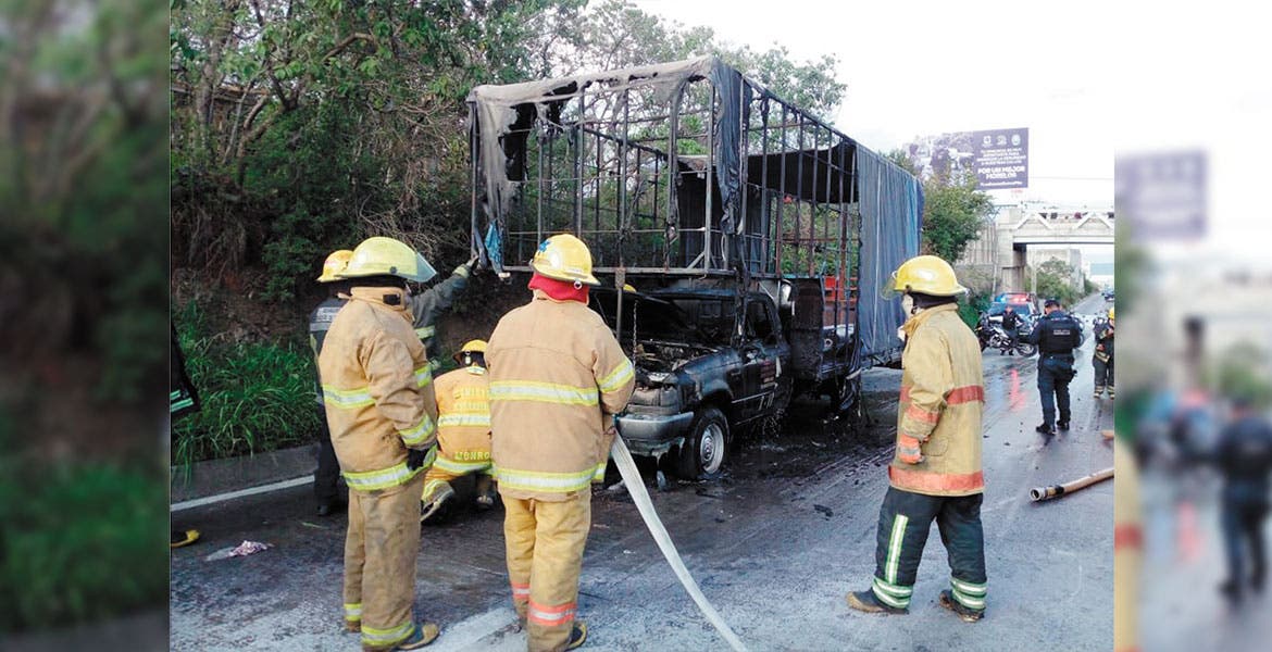 En ceniza quedó una camioneta Ford-Ranger, placas KZ75-685 del Estado de México, tras incendiarse debido a un cortocircuito en el motor, cuando circulaba por el Paso Express, a la altura de la colonia Antonio Barona, en Cuernavaca.
