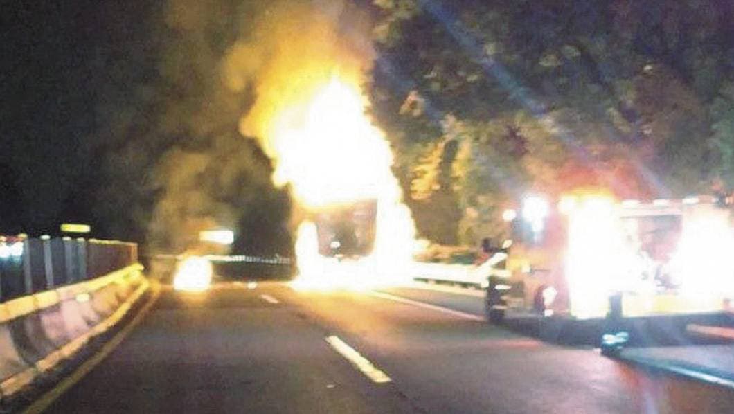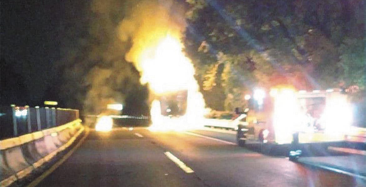 En ceniza quedó una camioneta que transportaba material para asfalto, tras incendiarse presuntamente debido al calentamiento de las balatas, cuando circulaba por la autopista México–Cuernavaca, a la altura del poblado de Chamilpa, en Cuernavaca, por lo que bomberos trabajó arduamente para sofocar las llamas.