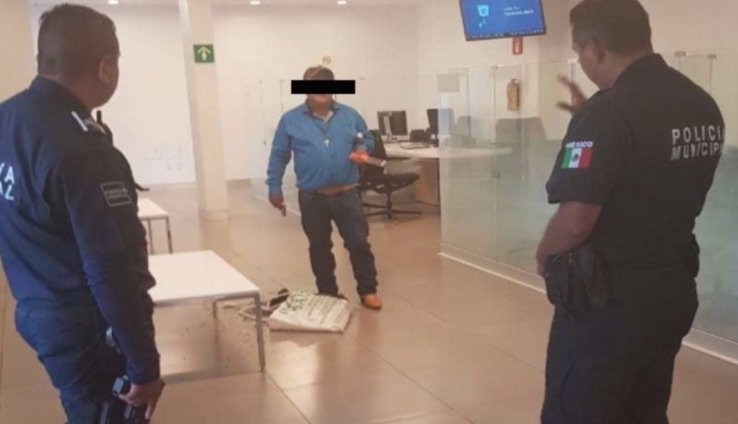 Un hombre con machete en mano y un arma entró a un banco en Pachuca, Hidalgo, y tomó como rehenes a los clientes y empleados que se encontraban en la sucursal.