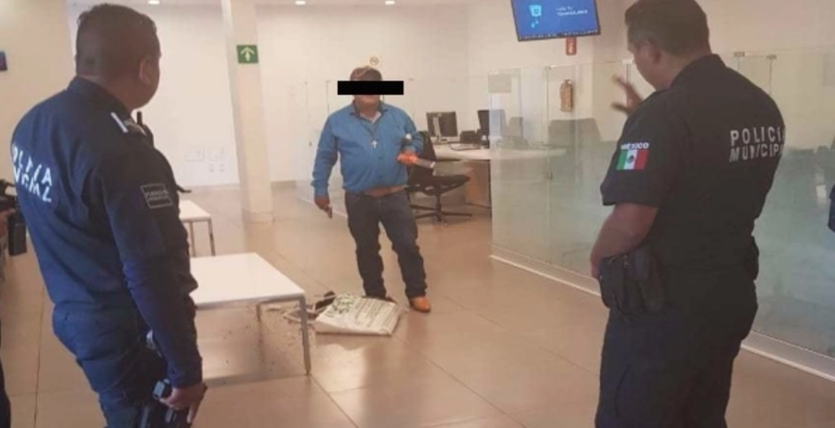 Un hombre con machete en mano y un arma entró a un banco en Pachuca, Hidalgo, y tomó como rehenes a los clientes y empleados que se encontraban en la sucursal.